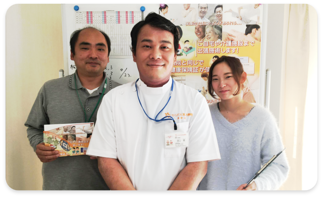 多摩・港北店の目指す場所として「地域の一番店としてありたい」と思っています。各種団体活動や福祉フェスタへの参加、介護施設への訪問施術など、様々な地域活動を通じて地域の活性化に寄与して参ります。引き続き業界内でより価値を提供する組織として有り続けるため、活動を惜しみません。